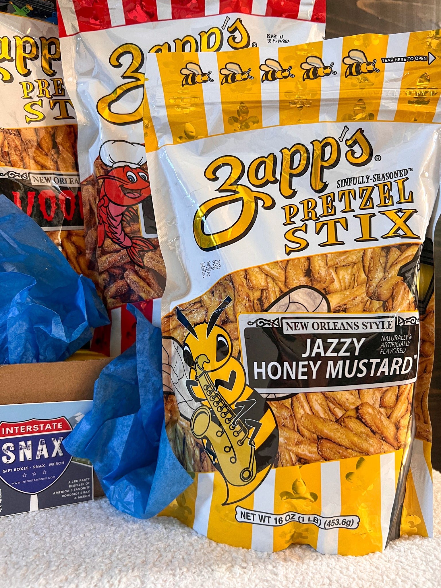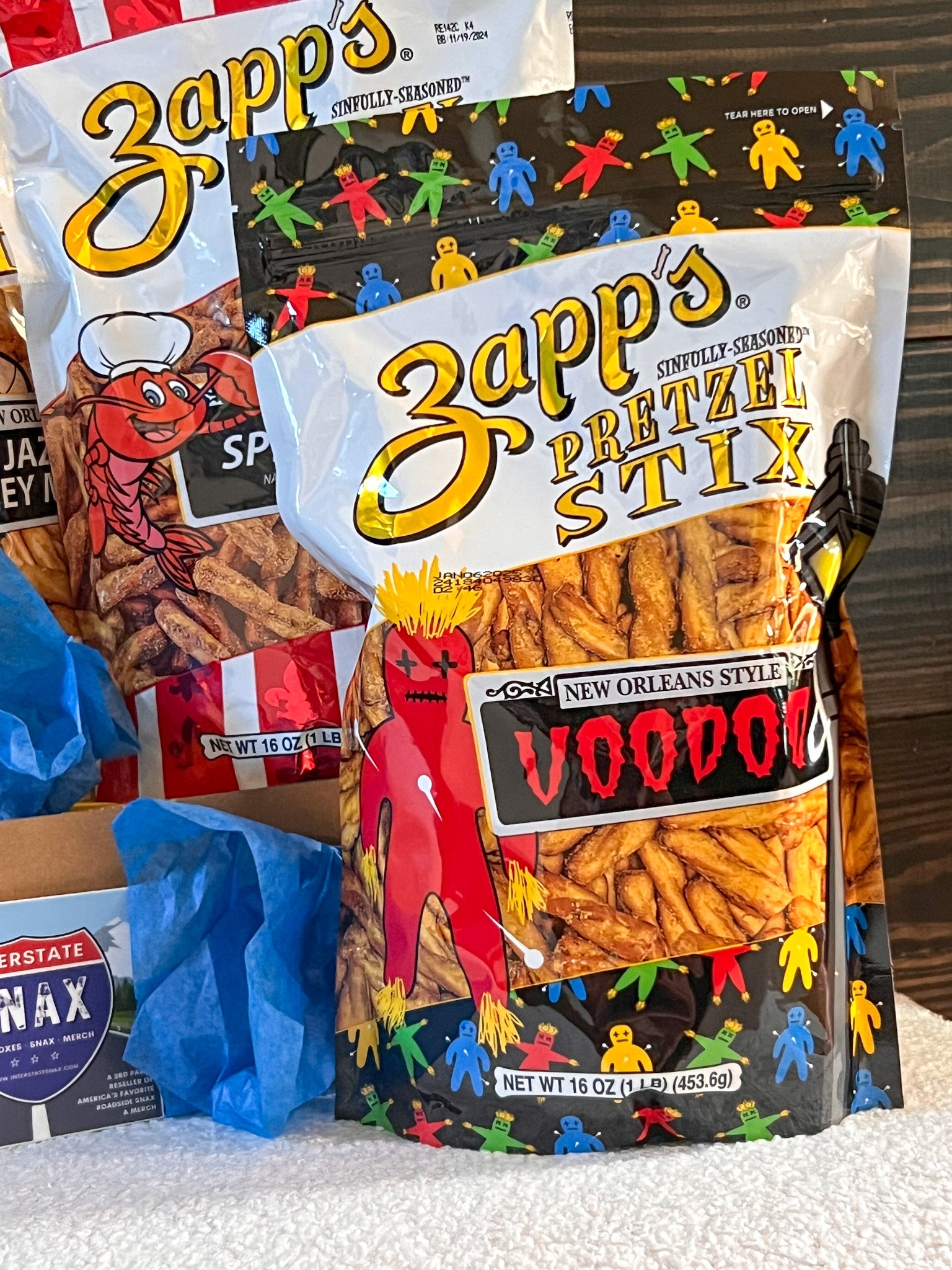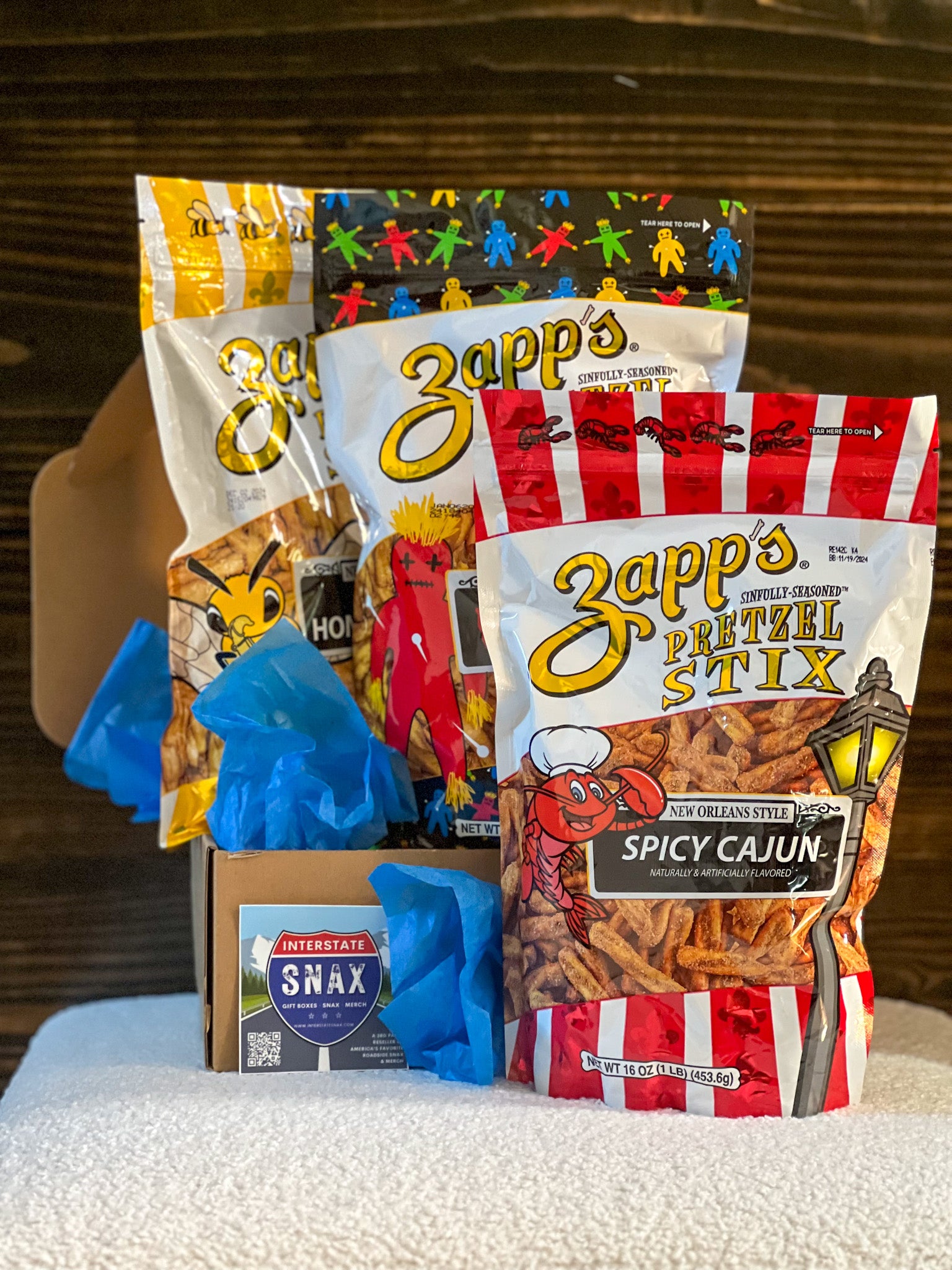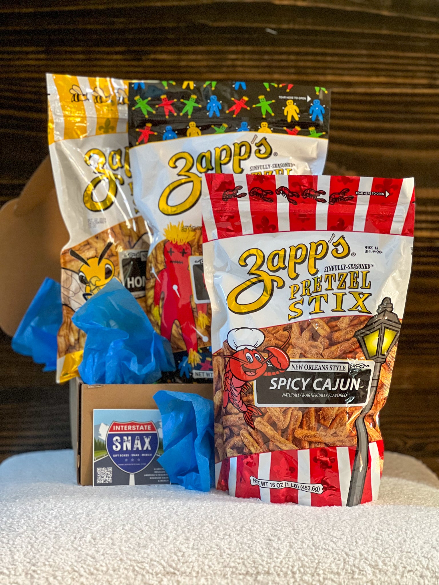 Zapp's New Orleans Pretzel Stix Snack Box; Gift Box, Voo Doo, Cajun, Honey Mustard, Cinnamon Sugar