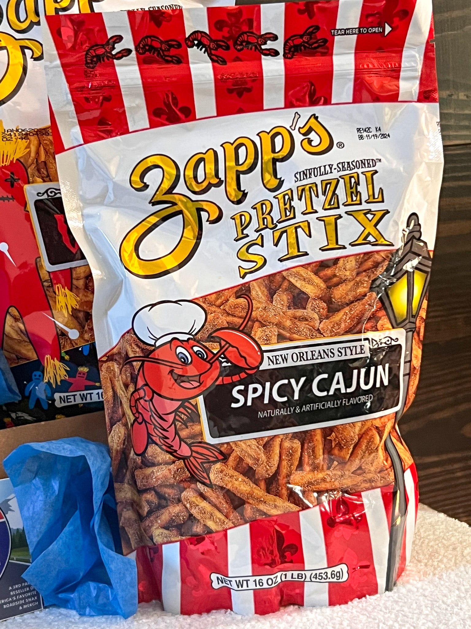 Gift Box includes THREE 16oz bags of seasoned pretzel stix sending your senses on a wild ride! This New Orleans inspired collection will only increase your love for the City of Second Chances.